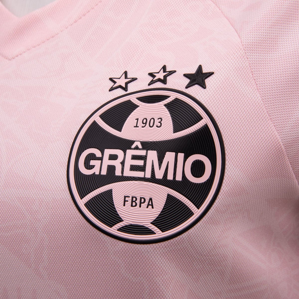 A Camisa Rosa do Grêmio 2025 é lançada em parceria com a Umbro e a FEMAMA, em apoio ao Outubro Rosa. Parte da renda é destinada ao IMAMA, reforçando o compromisso com a prevenção do câncer de mama.