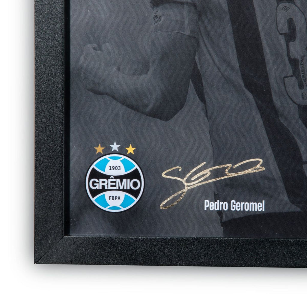 Para eternizar a conexão entre o ídolo Pedro Geromel e a torcida tricolor, o Grêmio lança 150 camisas autografadas pelo lendário zagueiro, cuidadosamente emolduradas.